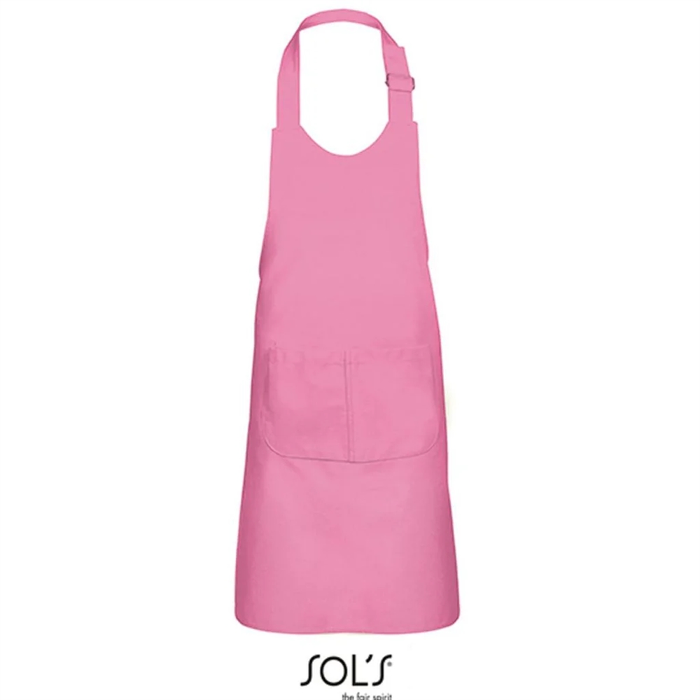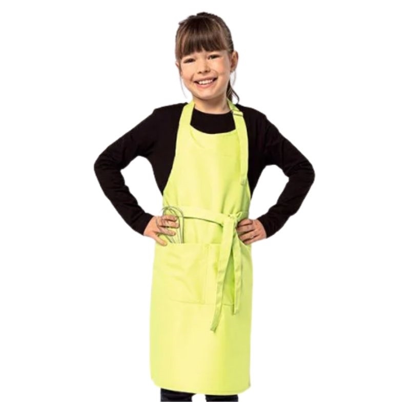Børneforklæde i farven pink, frisk grøn eller sort 64x47 cm, 65% polyester / 35% bomuld