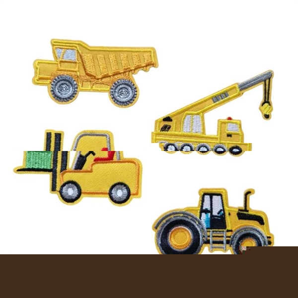 Strygemærke gule arbejdskøretøjer 4 stk måler cirka 7x4 cm stykket.