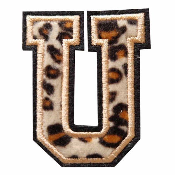 Fint strygemærke bogstav U i leopard print med sort kant. Strygemærket måler cirka 6 cm i højden og 5 cm i bredden . Sæt dit personlige præg på dit tøj med strygemærker som bogstaver. Strygemærket er lige til at stryge på tøjet.