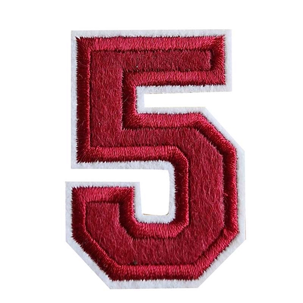 Strygemærke tal 5 i bordeaux med hvid kant, måler cirka 5,8 cm i højden og 4 cm i bredden . Strygemærket er lige til at stryge på tøjet. Sæt personligt præg på dit tøj med strygemærker tal, kun fantasien sætter grænsen.